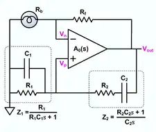 Коло зворотного зв'язку має ослаблення 1:29, тому операційний підсилювач повинен мати коефіцієнт підсилення 29.