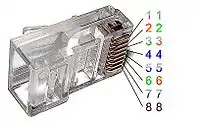 Існують дві схеми з'єднання коннекторів 8P8C з витою парою: