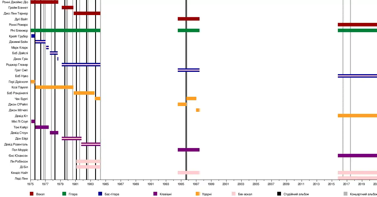 ![]() Ронні Джеймс Діо та Річі Блекмор, 1977 | |