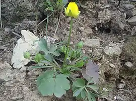 Ця багаторічна рослина з базальною розеткою листя досягає 50 см заввишки. Листки злегка розділені. Великі жовті квіти діаметром до 35 мм. Насіння сім'янки, мають прямий дзьоб. Цвіте в період з лютого по квітень.