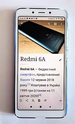 Redmi 6A — бюджетний смартфон, представлений Xiaomi 12 червня 2018 року.[1] Коштував в Україні 1999 грн (станом на 11 квітня 2020)[4]