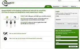 ResearchGate (дослідницька брама) — науковий портал та соціальна мережа[4], засіб співробітництва між вченими з будь-яких наукових дисциплін. ResearchGate містить веб-застосунки, включаючи семантичний пошук (пошук по резюме)[5], обмін файлами, спільне користування базою публікацій, форуми, методологічні дискусії, групи тощо. Члени можуть створювати свій персональний блог у межах мережі.