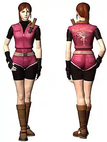 - Клер Редфілд — другий протагоніст головний персонаж гри. Студенка, яка на мотоциклі приїжджає до Ракун-сіті у пошуках свого брата, члена S.T.A.R.S Кріса, що був головним персонажем оригінальної гри. Дуже оптимістична, смілива і сильна дівчина, як на пересічного громадянина Ракун-сіті, вона показує неабиякий самоконтроль і сміливість. у блуканнях містом з Шеррі Біркін опікується нею, певною мірою заміняючи матір. Її основна зброя — пістолет Browning Hi-Power, гранатомет M79, арбалет і експериментальний електропістолет корпорації Umbrella. Її особливий предмет — відмичка, яка дозволяє відкривати двері без ключів, тоді як Леон мусить спочатку знати підходящі.