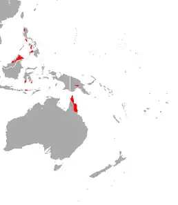 Країни проживання: Австралія, Індонезія, Малайзія, Папуа Нова Гвінея, Філіппіни, Східний Тимор. Він був записаний від 200 до 1500 м над рівнем моря. Це лісовий вид, який живе в первинних і вторинних лісах. Лаштує сідала поодинці або невеликими колоніями, в печерах, шахтах та інших подібних місцях проживання.