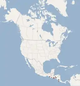 Цей вид поширений в південному мексиканському штаті Чьяпас, на півдні Гватемали, в Гондурасі, Сальвадорі, Нікарагуа і пн.-зх. Коста-Рики. Він живе в листяних лісах.