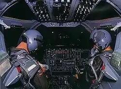 Основу бортового радіоелектронного обладнання бомбардувальника складає багатофункціональна РЛС з синтезуванням апертури AN/APQ-164, яка забезпечує всепогодне виявлення і розпізнавання стаціонарних і рухомих наземних об'єктів, а також робить можливим політ літака на малих висотах та огинання ним рельєфу місцевості. До складу системи захисту літака входять: станція попередження про опромінення і постановки активних перепон AN/ALQ-161, система управління AN/ALQ-184, автомати скидання дипольних відбивачів і ІЧ пасток, а також буксирування повітряних перешкод AN/ALE-49 (розміщені у двох контейнерах, по чотири в кожному). Польотні дані і інформація, отримана від прицільно-навігаційного обладнання та системи оборони, відображаються на кольорових багатофункціональних індикаторах, установлених у кабіні екіпажу. Системи і обчислювальні засоби бортового РЕО об'єднані між собою за допомогою чотирьох мультиплексних шин розподілу даних з елементами волоконної оптики стандарту 1553В.