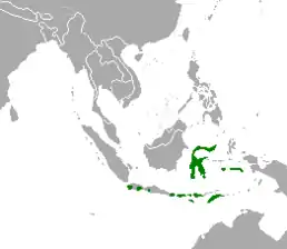 Зустрічаються на більшості островів Південно-Східної Азії. Уродженець Індонезії (Балі, Ява; Введений: Борнео, Малих Зондські острови, Молуккські острови, Папуа, Сулавесі). Крім того введений у наступні країни: Австралія; Бразилія; Малайзія; Маврикій; Нова Каледонія; Нова Зеландія; Папуа-Нова Гвінея; Реюньйон; Таїланд; Східний Тимор. Населяє головним чином листяні ліси, плантації і пасовища, полюбляє узлісся.
