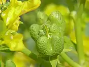 Це багаторічна трав'яна рослина заввишки до 80 сантиметрів. Листки складні, кожен розділений на кілька сегментів, які поділяються на менші листочки. Суцвіття — це скупчення квітів, кожне з яких складається з чотирьох або п'яти яскраво-жовтих пелюсток, з прикрашеними бахромою полями. Плоди — коробочки, які поділяються на гострі частки.