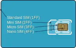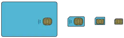 - повнорозмірна SIM — застарілий стандарт картки, що використовувалась у перших моделях мобільних телефонів;