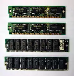- Модулі мали ширину шини даних 8 біт та могли мати додатковий біт контролю парності. Використовувалися в персональних комп'ютерах на основі 16-бітних процесорів (встановлювалися парами) та перших 32-бітних процесорів (встановлювалися групами по 4).
