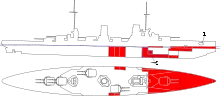 палуба: 30—50 мм башти ГК: 250 мм барбети ГК: 230 мм каземат ПМК: 150 мм командирська рубка: 300 мм | |