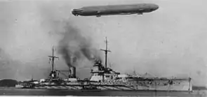 | Лінійний крейсер «Зейдліц» з цепеліном над ним | ||