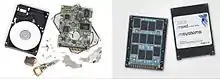 Ключовими компонентами SSD є контролер і пам'ять для зберігання даних. Основним компонентом пам'яті в SSD традиційно була DRAM, енергозалежна пам'ять, але з 2009 року це найчастіше NAND флеш енергонезалежна пам'ять.
