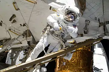 Під час польоту було здійснено два виходи у відкритий космос.