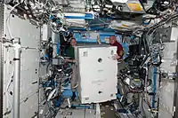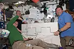 Усередині станції астронавти продовжували обладнати знову пристикований модуль «Леонардо».