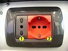В Італії домінує стандарт (CEI 23-16/VII), однак, Schuko схвалюється і широко використовується. Прилади продаються або з італійської виделкою, або з Schuko. Деякі розетки приймають вилки обох типів, але в основному — тільки одного з них. Вилки Schuko найчастіше використовуються в приладах, які споживають великий струм, таких як пральні машини. Вони досить широко поширені в Південному Тіролі, з його культурними, економічними і туристичними зв'язками з Австрією.