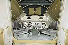 У силовому відділенні розміщувався двигун, паливний бак, рульове управління передніми колесами та ін. За протипожежною перегородкою знаходився пост управління, де були місця механіка-водія та командира бронетранспортера. На приладовому щитку в районі місця механіка-водія були встановлені прилади, що контролювали параметри роботи двигуна (термометр, датчик тиску масла, тахометр, покажчик палива), спідометр і контрольні лампочки. Управління бронетранспортером здійснювалось за допомогою керма і педалей (зчеплення, газ і гальмо). Праворуч від місця механіка-водія знаходилися два важеля; перемикач швидкостей і ручне гальмо.