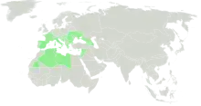 Країни поширення: Іспанія — Канарські острови; Алжир; Лівія; Марокко; Туніс; Ліван; Вірменія; Азербайджан; Грузія; Росія — Передкавказзя; Албанія; Греція [вкл. Крит]; Італія [вкл. Сардинія, Сицилія]; Чорногорія; Франція [вкл. Корсика]; Іспанія [вкл. Балеарські острови]. Живе на скелях біля моря і на піщаних пляжах.