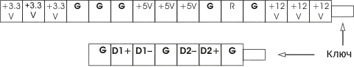 D1+,D1−,D2+,D2− — два канали передачі даних (від контролера до пристрою й від пристрою до контролера відповідно). Для передачі сигналу використається технологія LVDS, проведення кожної пари (D1+, D1− і D2+, D2−) є екранованими витими парами.