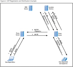 - Сервер визначення місця розташування або сервер реєстрації (Register): даний вид сервера служить для реєстрації користувачів. Реєстрація користувача проводиться для визначення його поточної IP-адреси, для того щоб можна було зробити виклик user @ IP-адреса. У разі якщо користувач переміститься в інше місце і / або не має певної IP-адреси, його поточну адресу можна буде визначити після того, як він зареєструється на сервері реєстрації. Таким чином клієнт залишиться доступний за однією і тією ж SIP-адресою незалежно від того, де насправді знаходиться.