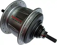 Shimano Nexus — бренд, під яким випускаються запчастини для велосипедів, такі як планетарна передача, cranksets, манетки, brake levers, hub brakes, hub dynamos та ЦПУ для автоматичного перемикання передач. Серія в першу чергу спрямована на "комфортний" ринок, такий як міські пасажири та туристи, і тому не витримують умов позашляховиків або гірських велосипедів. Внутрішні шестерні Nexus з вільним обертом сумісні з "роликовим гальмом" Shimano, його версією барабанного гальма,[1][2][3] але не з дисковим гальмом Shimano, що використовується з висококласними внутрішніми шестернями Shimano Alfine.