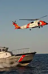 Sikorsky HH-60J Jayhawk - багатоцільовий двомоторний вертоліт середньої дальності, використовується береговою охороною США для пошуку і порятунку, у правоохоронних органах, військовій готовності та місіях із захисту морського середовища. HH-60J призначений для польотів екіпажу з чотирьох осіб на відстань до 483 км від берега, здатен підняти до 6 людей на борт додатково, залишаючись при цьому на місці до 45 хвилин і повернутися на базу, маючи адекватний запас палива. Нормальна крейсерська швидкість HH-60J становить від 250 до 259 км/год, і вертоліт здатний досягти 333 км/год за короткий проміжок часу. HH60J може літати на швидкості 259 км/год протягом 6-7 годин.[1]