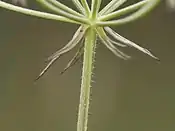 Багаторічна трав'яниста рослина 60–120 см заввишки. Рослина жорстко волосиста. Листки двічі, а нижні іноді тричі перисторозсічені. Кінцеві часточки листків подовжені, 2–4 мм завдовжки. Обгортки і обгорточки численні, з ланцетних, широко перепончато облямованих, пізніше відігнутих листочків. Промені зонтика нерівні, як і квітконіжки, вкриті тільки з внутрішнього боку густими волосками. Квітки білі. Плоди уздовж первинних ребер з короткими жорсткими волосками[2].