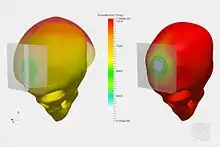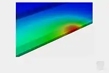![]() Це зображення показує тепловий ефект в електронних чипів, змонтованих на друкованій платі (PCB). Цей перехідний тепловий аналіз проводився на SimScale платформи. Проект: перехідний тепловий Аналіз друкованих плат.[28] |