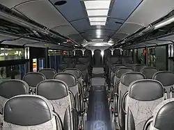 Автобус має 2 двері притискного типу з можливим влаштуванням замків на них, має комфортабельний салон з 49—53 сидіннями, що регулюються за бажанням пасажирів, обладнується аудіо- і відеосистемою), туалетом, GPS та усім іншим, що личить сучасному туристичному лайнерові.