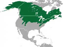 Країни поширення: Канада, США. Він займає велику різноманітність наземного середовища проживання крім зон, де дуже мало або немає рослинності.
