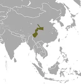 Зустрічається тільки в районі Баоксін на півночі провінції Сичуань (Китай) на висоті 3000 м над рівнем моря. Населяє гірські ліси. Віднесена до категорії BI і 2c IUCN, вважається видом, що знаходиться під загрозою зникнення.