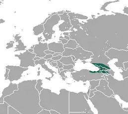 Країни поширення: Вірменія, Азербайджан, Грузія, Росія, Туреччина. Знайдений від рівня моря — 2400 м. Мешканець скелястих вологих місць проживання в середині гірських лісів. Мешкає на берегах річок і озер, покритих густою трав'янистою рослинністю.