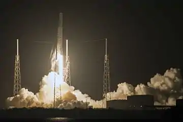 Перший ступінь ракети-носія Falcon 9 після виведення корабля на необхідну висоту успішно повернувся на землю в район запуску на мисі Канаверал.[3]