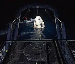 Ця стаття містить текст із джерела, яке перебуває в суспільному надбанні. - Chang, Kenneth (2 травня 2021). SpaceX Makes First Nighttime Splash Down With Astronauts Since 1968. The New York Times. Процитовано 2 травня 2021.