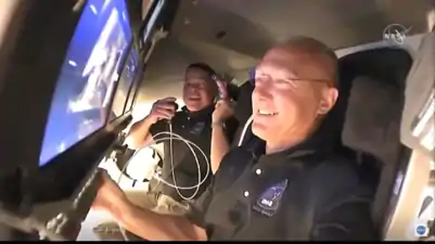 Президент США Дональд Трамп і віце-президент Майк Пенс були присутні як під час першої, так і під час другої (успішної) спроби запуску «американських астронавтів із американської землі»[23], що відбулася вперше за останні дев'ять років, та ще й приватною компанією[24][25]. Високопосадовці подякували НАСА та команді SpaceX (а особливо її очільнику) за вдало виконану роботу. Ілон Маск же у своїй промові зазначив, що «Батут працює!»[26][27]. Це посилання на 2014 рік, коли Дмітрій Рогозін порадив американцям запускати своїх астронавтів на МКС за допомогою батута замість кораблів «Союз». Так нинішній директор Роскосмосу відреагував на санкції США через розпочату Росією війну проти України[28]. Тепер через втрату монополії Роскосмос недоотримає близько $400 млн. на рік[29][30].