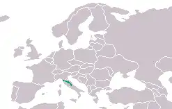 Ендемік Італії. Поширений у Північних та Центральних Апеннінах від провінцій Реджо-Емілія (Емілія-Романья) та Лукка (Тоскана) на південь до провінції Пескара (Абруццо). У гори піднімається до 1600 м над рівнем моря.