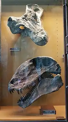 | Скам'янілий череп двох сфенакодонтид: Clelandina (Therapsida, Gorgonopsidae) та Dimetrodon (Sphenacodontidae). | |