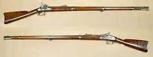 Модель 1855 зазвичай називають нарізним мушкетом, оскільки він був такої ж довжини, як і мушкети, які він замінив. Він мав ствол довжиною 40 дюймів (100 см) і загальну довжину 56 дюймів (140 см). Ствол кріпився до трьох гвинтівкових стрічок. Також була виготовлена коротша дводіапазонна версія, з двома стрічками яку зазвичай називають гвинтівкою Harpers Ferry Model 1855. Ця коротша гвинтівка мала 33-дюймовий (84 см) ствол і загальну довжину 49 дюймів (120 см).[3] Також був виготовлений пістолет-карабін зразка 1855 року. Нарізний мушкет моделі 1855 був модифікований у 1858 році, щоб включати простіший приціл (типовий тип відкидного листа), накладну коробку на бічній частині приклада та залізний накінечник на заміну латунному. Цей варіант іноді називають Типом II, а попередню модель — Типом I.[4]