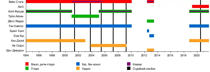 - Вейн Статік — вокал, ритм-гітара (1994—2010, 2012—2013); клавіші (2001—2005, 2012—2013) (помер 2014)