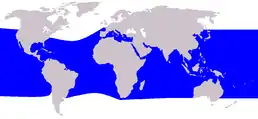Це тропічний і субтропічний вид, який зазвичай мешкає глибоко, в океанічних водах всіх трьох основних океанів, рідше виходить на північ від 40° пн.ш. і на південь від 35° пд.ш. Тим не менш, в деяких областях (наприклад, біля берегів Бразилії та Західної Африки), Steno bredanensis може зустрічатися в більш мілких прибережних водах. Зустрічається також в багатьох напівзакритих водоймах (таких, як Сіамська затока, Червоне море, Мексиканська затока, Карибське море і Каліфорнійська затока.