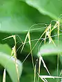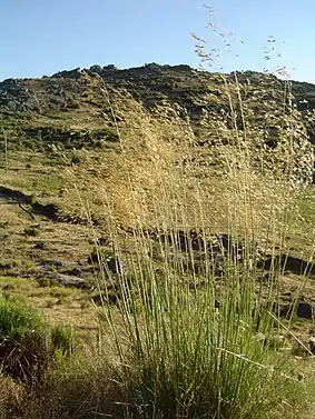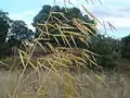 Рослина вистою до 1,8 м. Квітне на початку літа. Волоті схожі на овес.