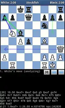 Stockfish (Стокфіш) — це вільний і відкритий шаховий рушій[5] UCI, доступний для різних персональних і мобільних платформ. Він розроблений Марко Костальбою, Джуно Кійскі, Гарі Ліндскоттом і Тордом Ромстадом, з багатьма внесками від спільноти розробників.