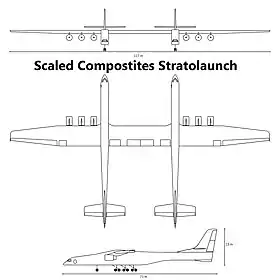 Літак-носій має два фюзеляжі завдовжки 72,5 метра кожний, з найбільшим у світі розмахом крил — 117,3 метра. Для порівняння, розмах крил найбільшого в світі українського літака Ан-225 «Мрія» має 88,4 метра, а довжина фюзеляжу — 84 метри. Він важить без навантаження 250 тонн, з навантаженням — 590 тонн.[5]