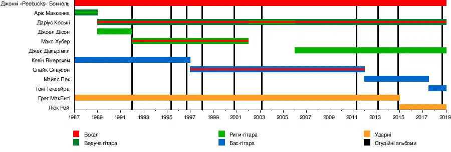 - Спайк Слаусон — бас-гітара, вокал (1997—2012)