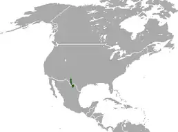 Вид зустрічався на чотирьох гірських хребтах на межі США та Мексики: гори Чісос та Девіс у Техасі, Гвадалупе у Техасі та Нью-Мексико, гори Сьєрра-де-ла-Мадера у штаті Коауїла у Мексиці. Зараз існує підтверджена популяція лише у горах Девіс, інші популяції, найімовірніше, знищені.[1]