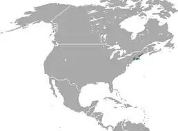 Вид фрагментарно поширений на північному сході США. Sylvilagus transitionalis зустрічається у прибережних південно-східних районах штату Мен, на півдні Нью-Гемпшира, у південно-східній частині Нью-Йорка, західному і частково східному Коннектикуті (на схід від річки Коннектикут), на заході Массачусетса та у Род-Айленді. Невеликі популяції існували у південній частині канадської провінції Квебек та американському штаті Вермонт. Обидві популяції вимерли у 1980-х роках.