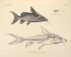 - Paugy, D. and T.R. Roberts, 2003. Mochokidae. p. 195—268 In C. Lévêque, D. Paugy and G.G. Teugels (eds.) Faune des poissons d'eaux douce et saumâtres de l'Afrique de l'Ouest, Tome 2. Coll. Faune et Flore tropicales 40. Musée Royal de l'Afrique Centrale, Tervuren, Belgique, Museum National d'Histoire Naturalle, Paris, France and Institut de Recherche pour le Développement, Paris, France. 815 p.