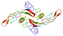 Кодований геном білок за функціями належить до факторів росту, мітогенів. Локалізований у позаклітинному матриксі. Також секретований назовні.
