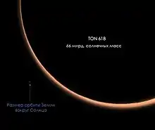 TON 618 — надзвичайно яскравий радіогучний квазар, розташований поблизу Північного полюса Галактики в сузір'ї Гончих Псів. З квазаром пов'язана надмасивна чорна діра масою близько 66 млрд M☉.