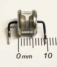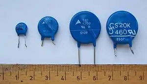 | Варистор (MOV) | до 70 kA | @ 100 A, 8x20 мкс імп.: 1,000 раз | ≈ 1 нс | Як правило 100-1,000 пФ +++ | 10 мкА |
